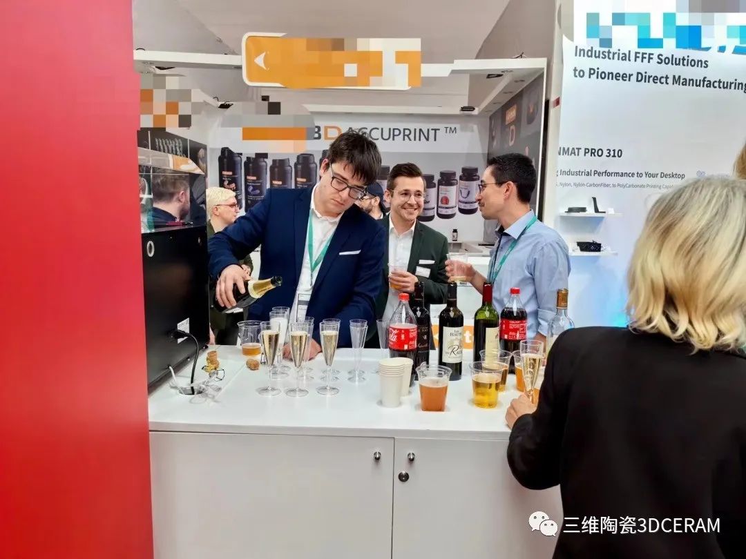 2023年11月8日,德國Formnext展第二天。展會結(jié)束后,3DCERAM在展臺上邀請來自世界各地的合作伙伴參加了一場隨興而友好的雞尾酒會。酒會上大家興致勃勃地互相交流對陶瓷3D打印的見解,以及未來3D打印行業(yè)的發(fā)展趨勢,氣氛愉快積極。
